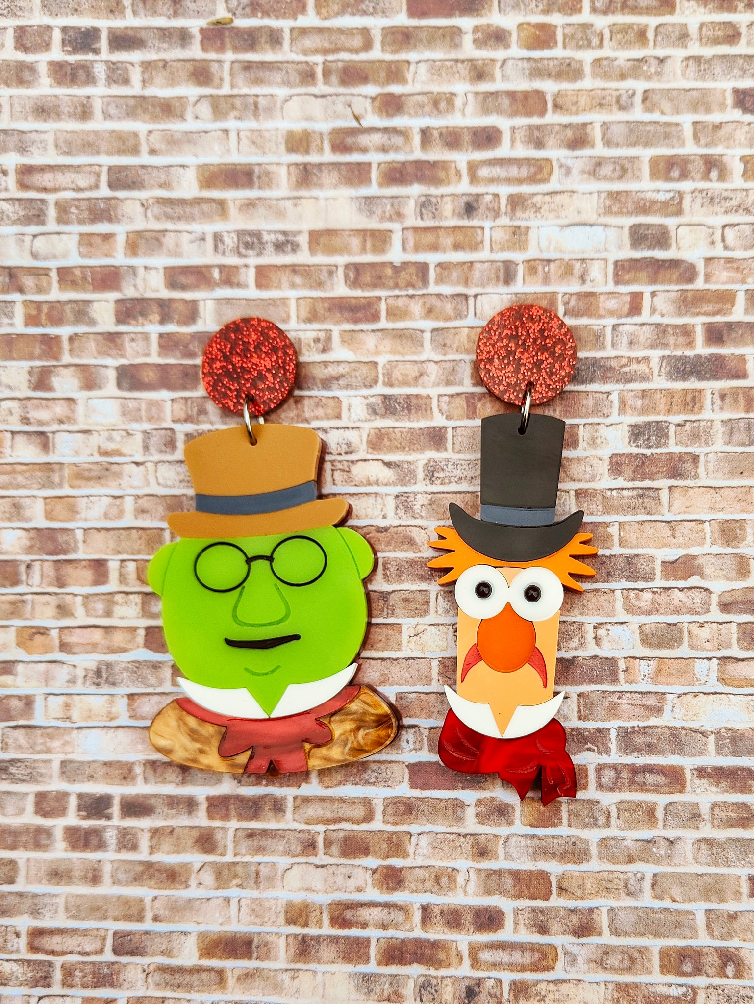 Please choose either red glitter studs or hooks. Characters measure 6.5 - 7cm high.